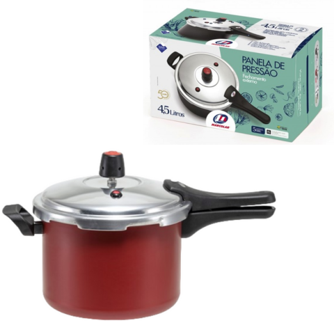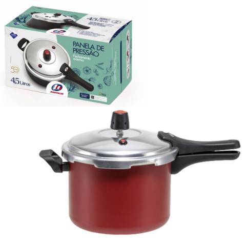 Panela de Pressão 4,5lts Fechamento Externo Rouge Marcolar no momento de realizar os seus preparativos favoritos, é essencial que você tenha uma panela que possa ser sua aliada na cozinha. Com a panela Marcolar você pode ter certeza de que os sabores e aromas serão perfeitamente preservados para desfrutar de refeições mais gostosas. Solte o chef interior que existe dentro de você! Sempre pronta e impecável Após cada uso, é importante limpar todas as partes completamente para que não haja contaminação nos próximos preparativos que você deseje realizar. Ao ter um revestimento antiaderente, essa tarefa é ainda mais fácil, pois evita que os restos de comida se grudem após o cozimento.